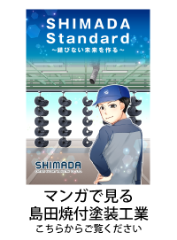 1963年(昭和38年)の創業以来、私たち島田焼付塗装工業は 「創意と工夫」を社是に掲げ、社名に表した「塗装」のスペシャリスト企業として、 自動車金属部品の塗装を主体に、独自技術の高揚・開発に邁進してきました。当社の特徴である連続コンベア式の電着塗装ラインを軸に、 防錆塗装から組み付け、梱包、発送までを担う一貫システム、 また中小企業ならではの多品種小ロット、お客様の視点に立った柔軟な対応は、 業界でも高い評価をいただいております。